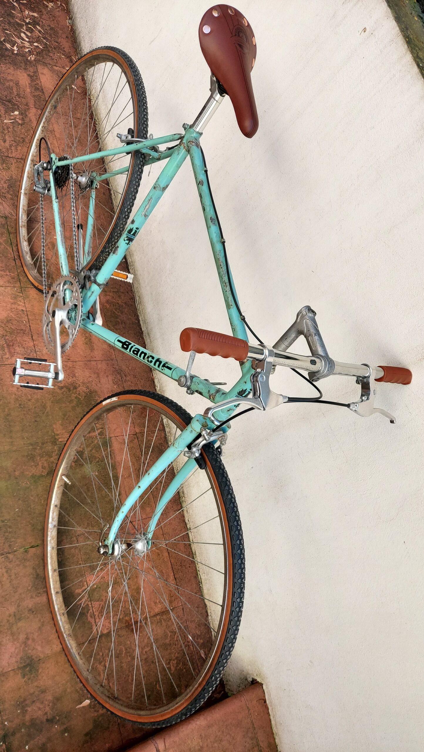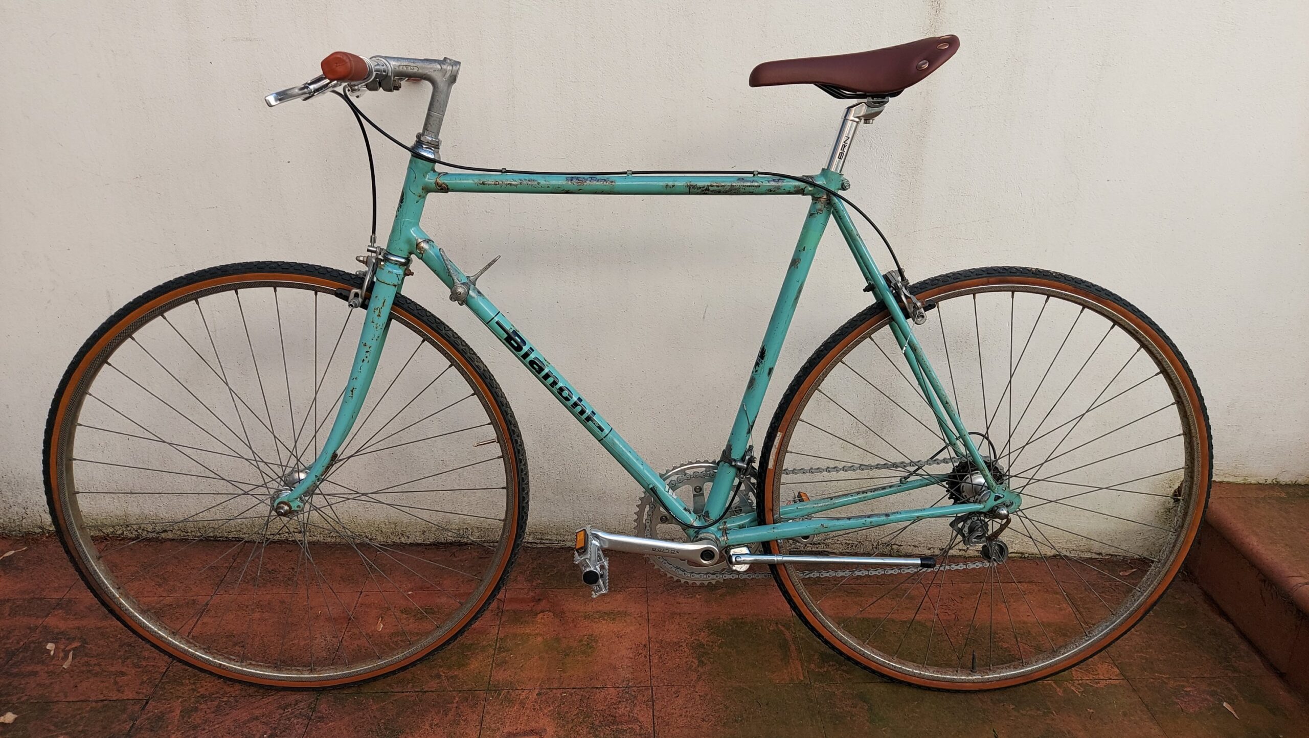 Bici totalmente smontata pulita e riassemblata pezzo per pezzo, molte parti sostituite. [Manubrio, manopole, leve freni guaine e cavi, reggisella, sella, pedali, catena]